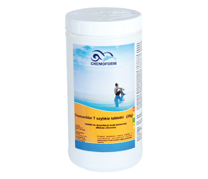 Stały preparat chlorowy w formie tabletek (20g) służy do szybkiej dezynfekcji wody basenowej. Zawiera około 56 % chloru.
