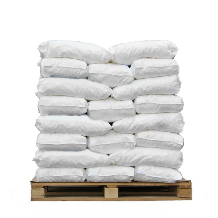 W worek foliowy PP a'25 kg z opisem produktu, na palecie po 40 sztuk.