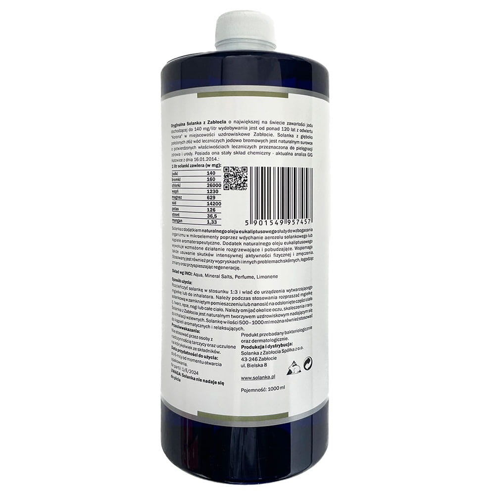 Solanka z dodatkiem naturalnego oleju eukaliptusowego służy do wzbogacania organizmu w mikroelementy poprzez wdychanie aerozolu solankowego lub kąpiele aromaterapeutyczne. Dodatek naturalnego oleju eukaliptusowego wywołuje wzmożone działanie rozgrzewające i pobudzające.
