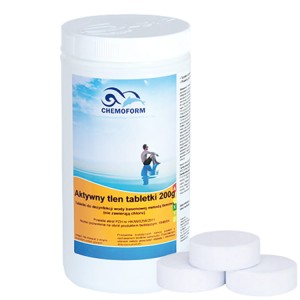 Produkt w postaci tabletek 200g przeznaczony dezynfekcji wody basenowej metodą tlenową. Tabletki szybko się rozpuszczają. Produkt biobójczy, posiada atest PZH, nie zawiera chloru. W celu osiągnięcia jak najlepszego rezultatu Aktywny tlen powinien być stosowany w połączeniu z produktem Aquablanc A.