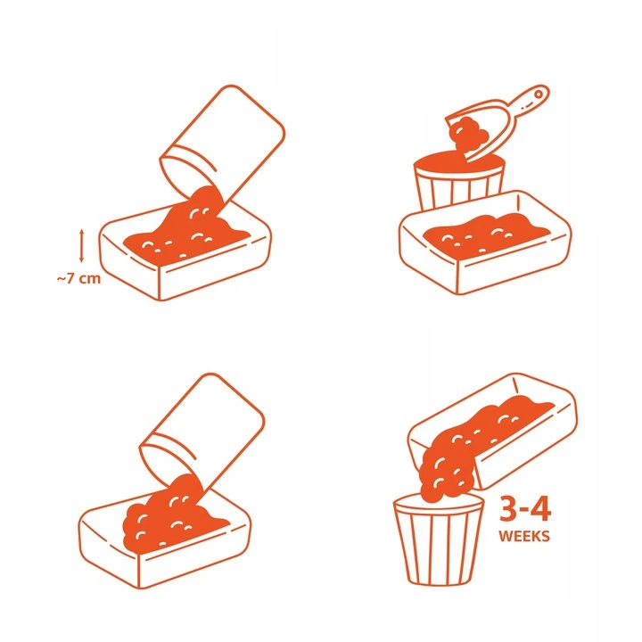 Przygotowanie: Wypełnij czystą kuwetę warstwą żwirku o wysokości 5–7 cm .