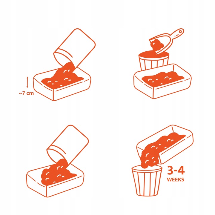 Uzupełnianie: Dosypuj świeży żwirek, aby zachować stały poziom w kuwecie.